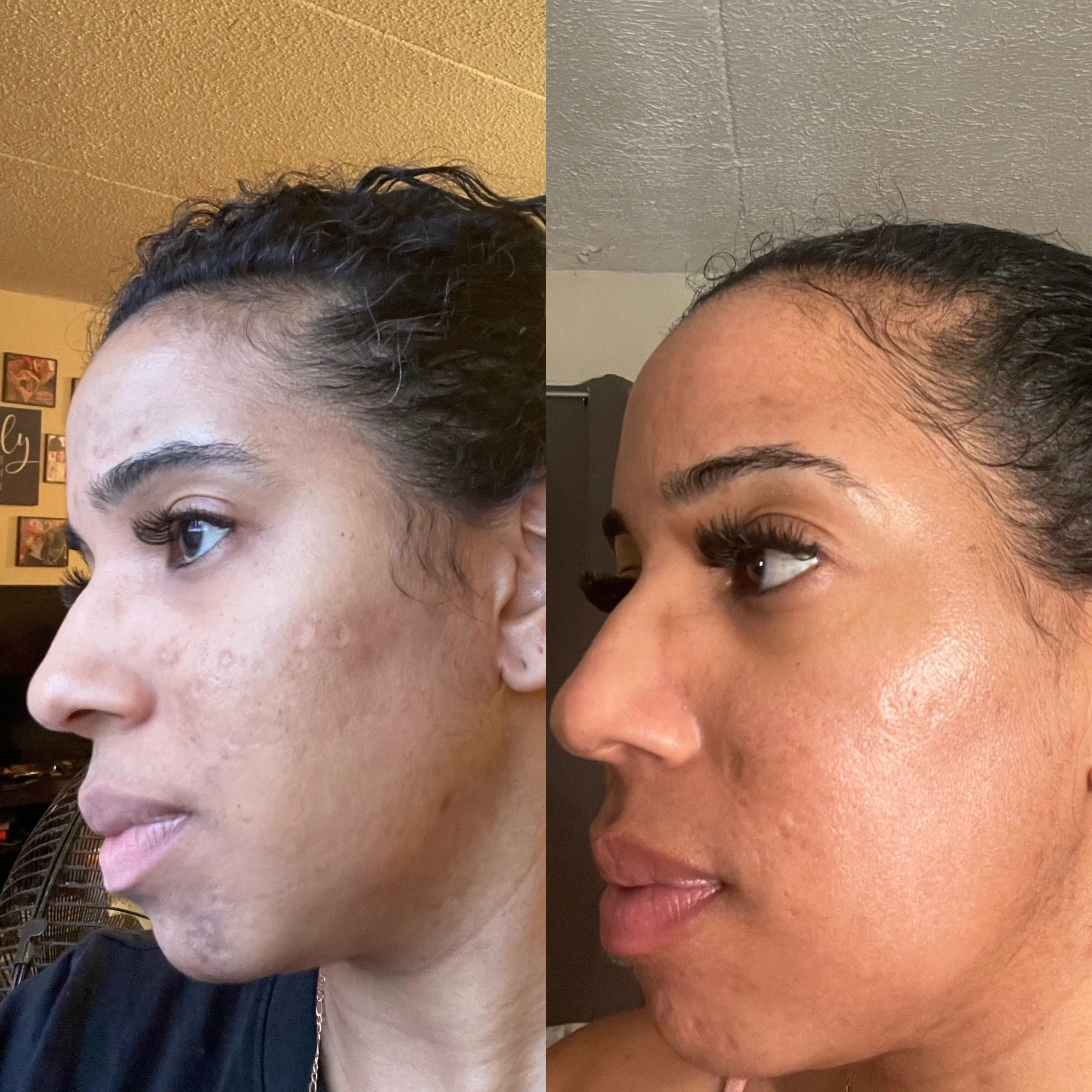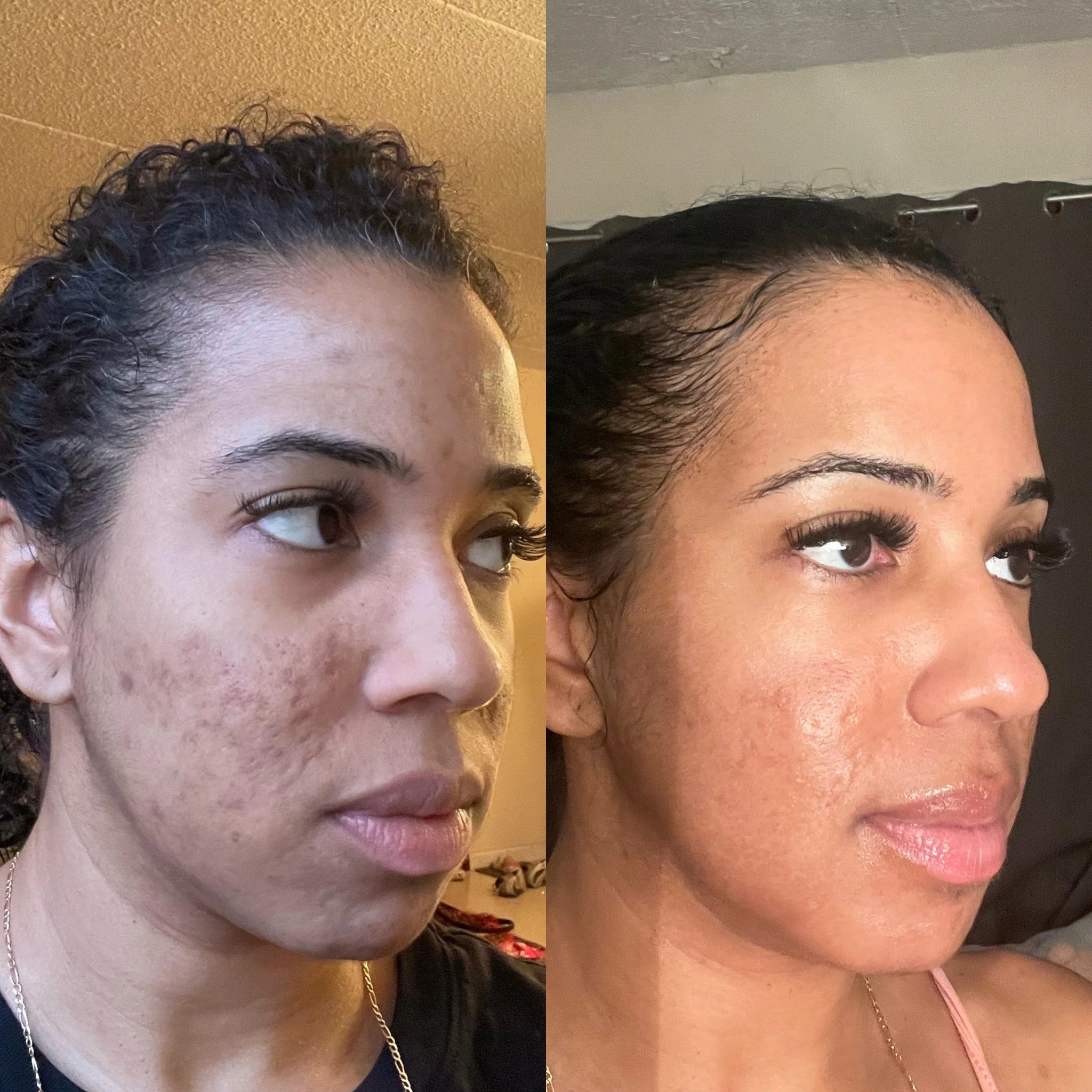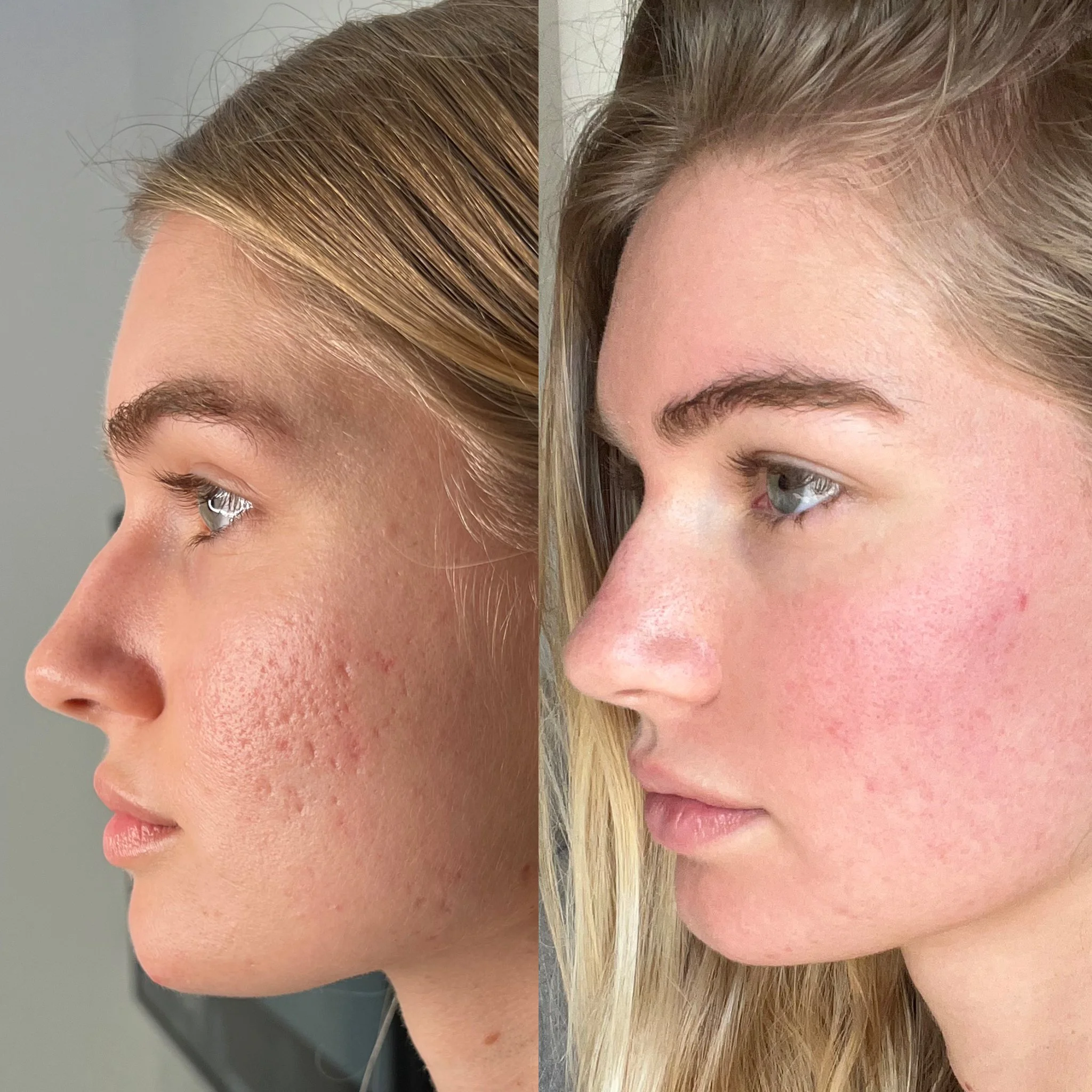 My patient came to see me after seeing the amazing results I produce for acne scar reduction. She has struggled with deep ice-pick acne scars for years, especially on the left side of her face. She loves her results and can clearly see the huge improvement in her scars. They are much less deep and her skin looks softened and refreshed. Even her family and friends have noticed! She feels amazing and confident without makeup now.